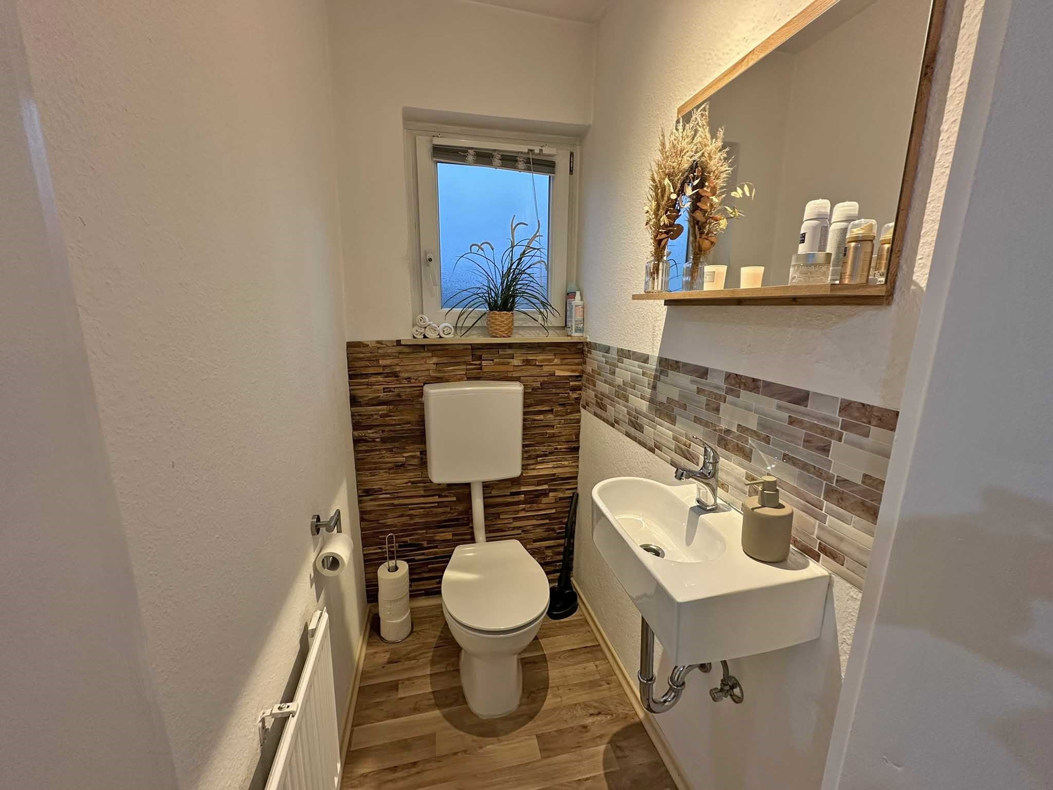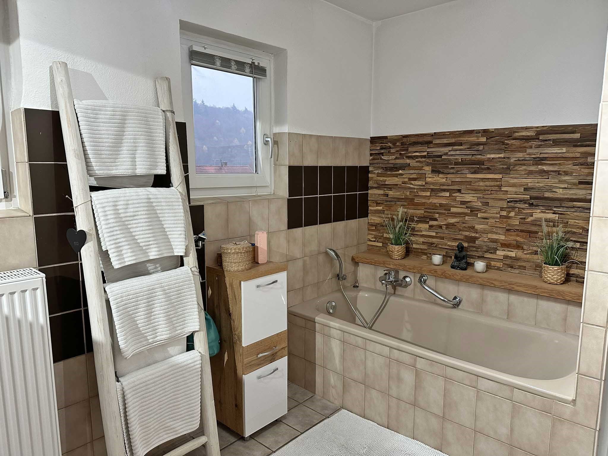 - Badausstattung: Dusche, Badewanne, Fenster