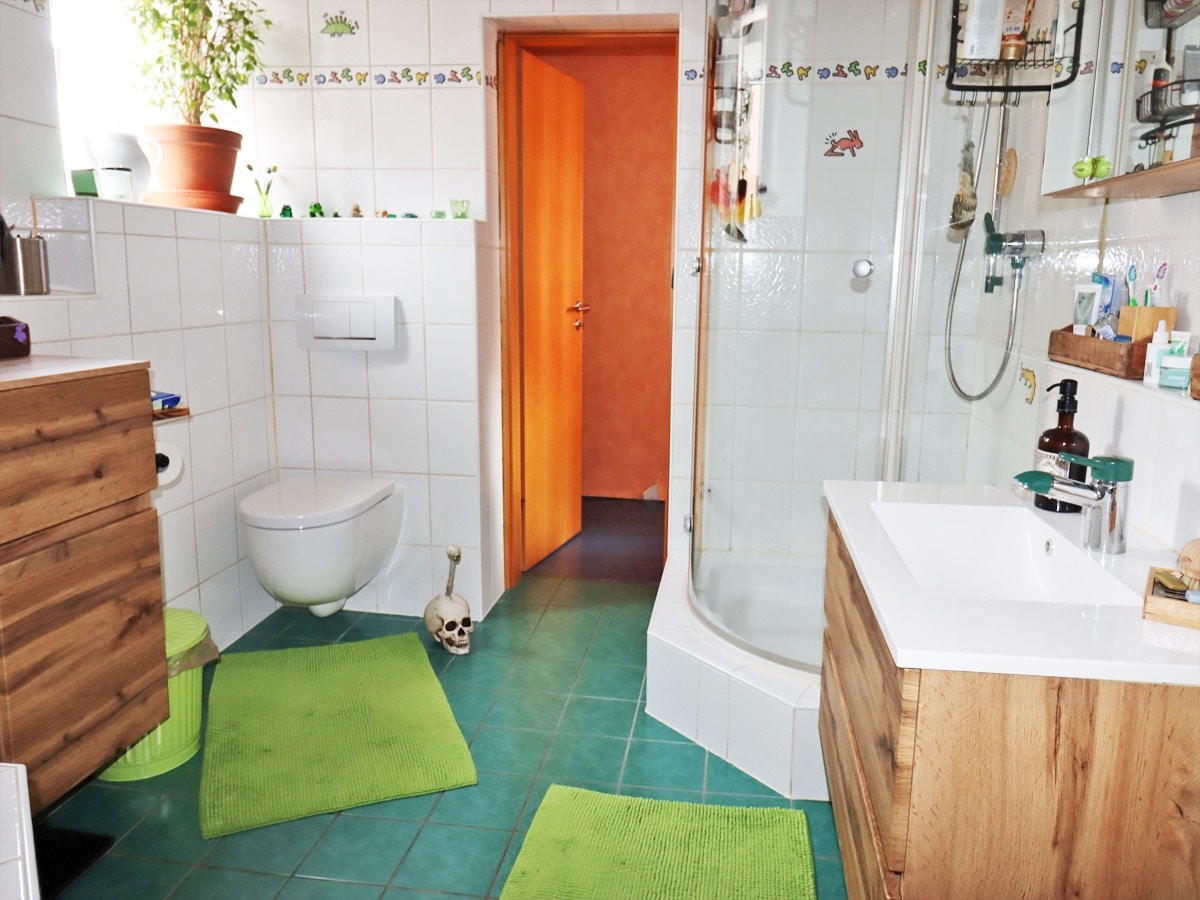 – modernisiertes Tageslicht-Duschbad im EG von 2020, mit begehbarer Dusche, Waschbecken und WC