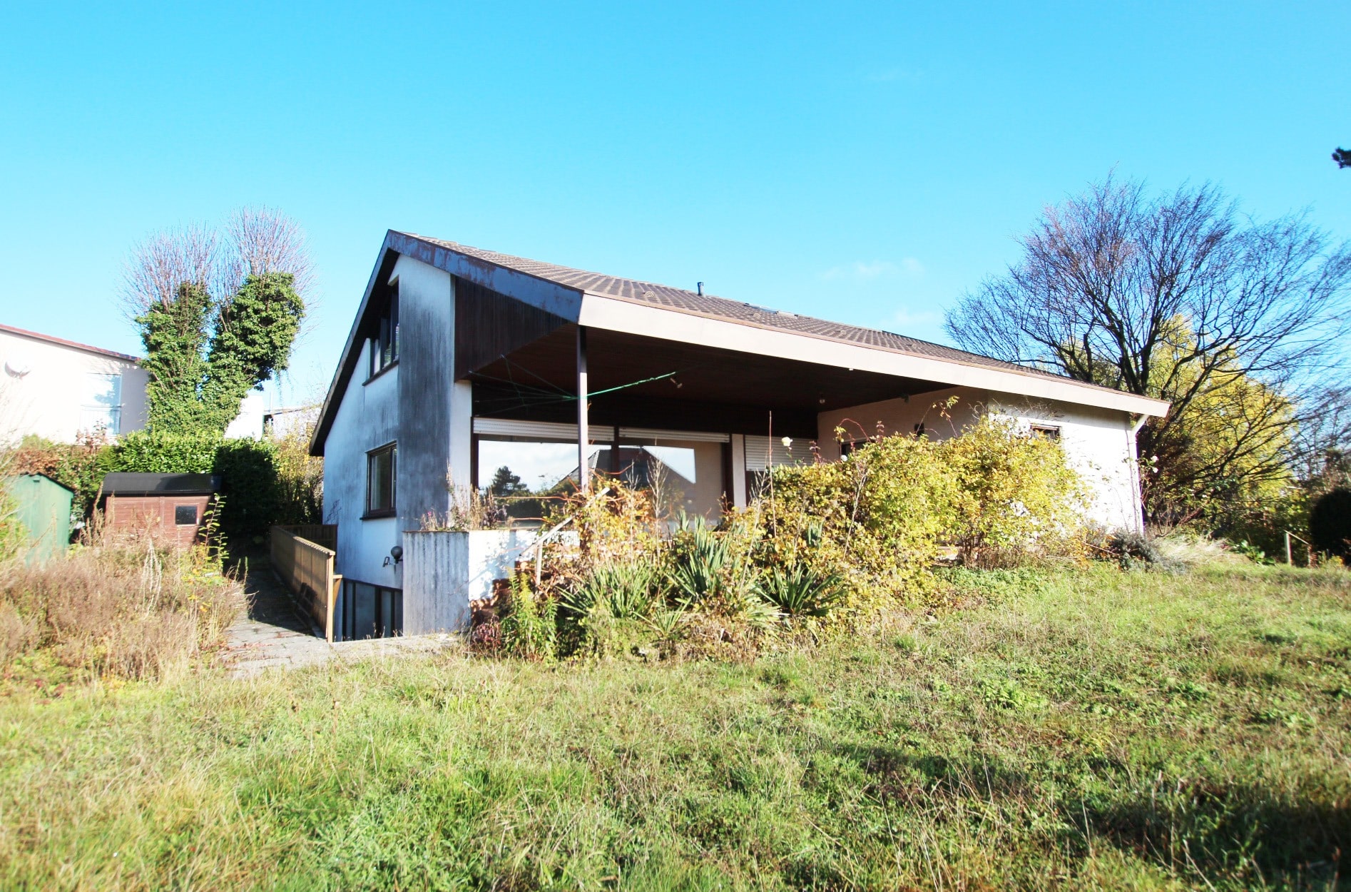 Das Haus an sich ist bungalowartig gestaltet und bietet somit die Möglichkeit des Wohnens auf einer Ebene.