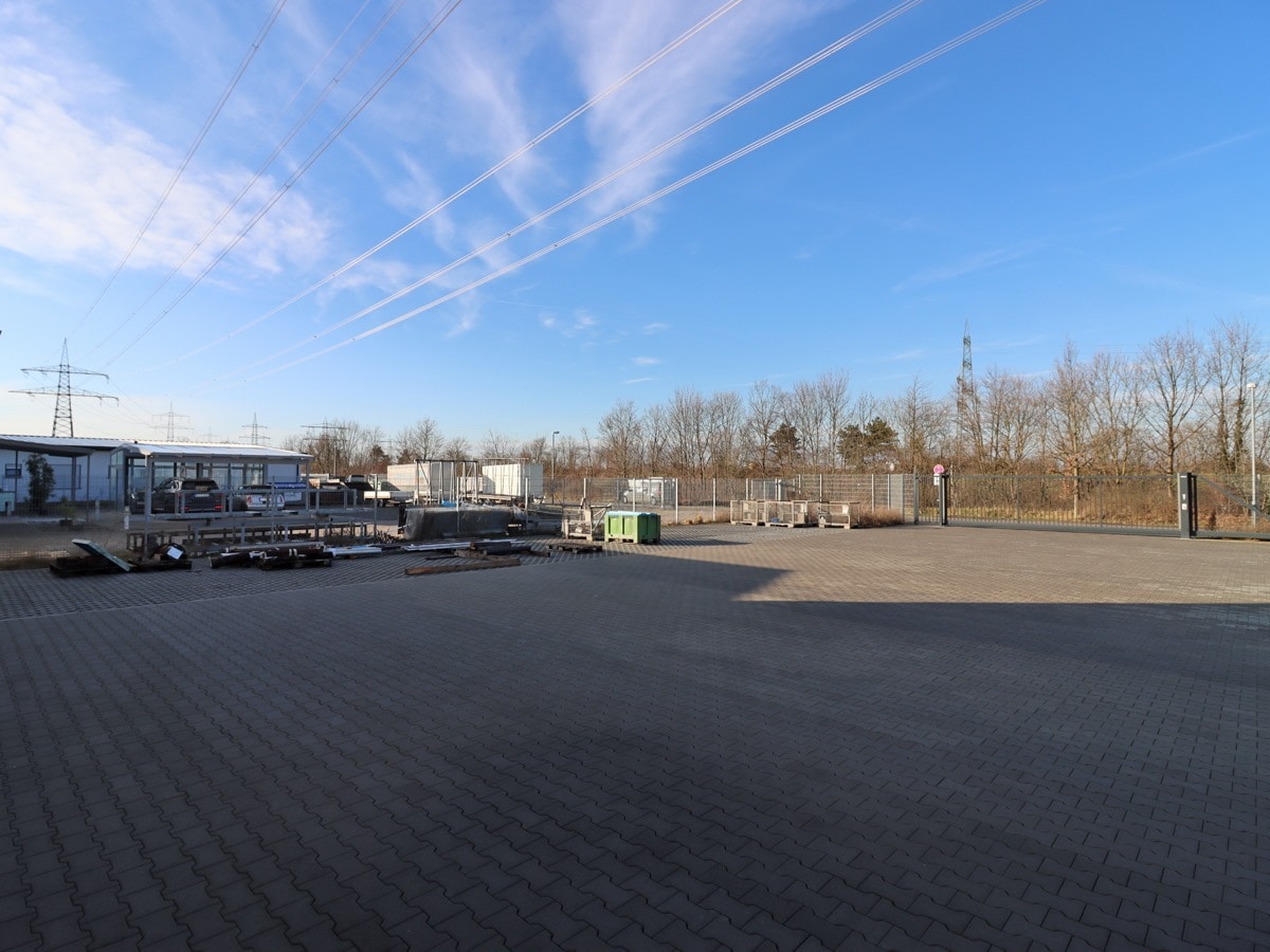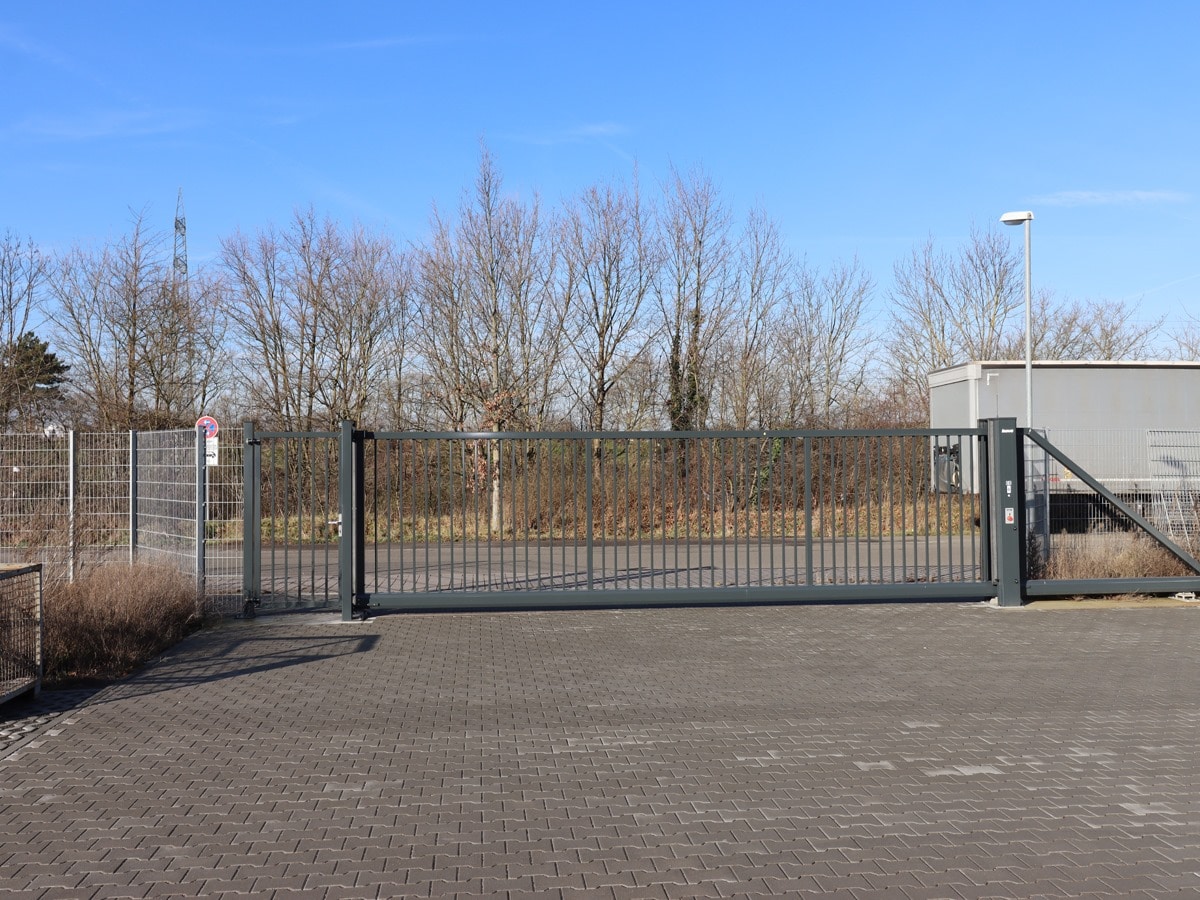 – Außenzaun mit Rolltor und großem Zufahrtsbereich